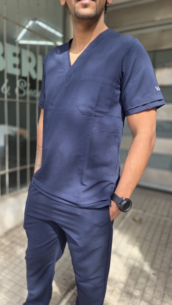 Ambo en tela spandex liviano con bolsillos laterales. Pantalón achupinado con bolsillos tipo cargo.