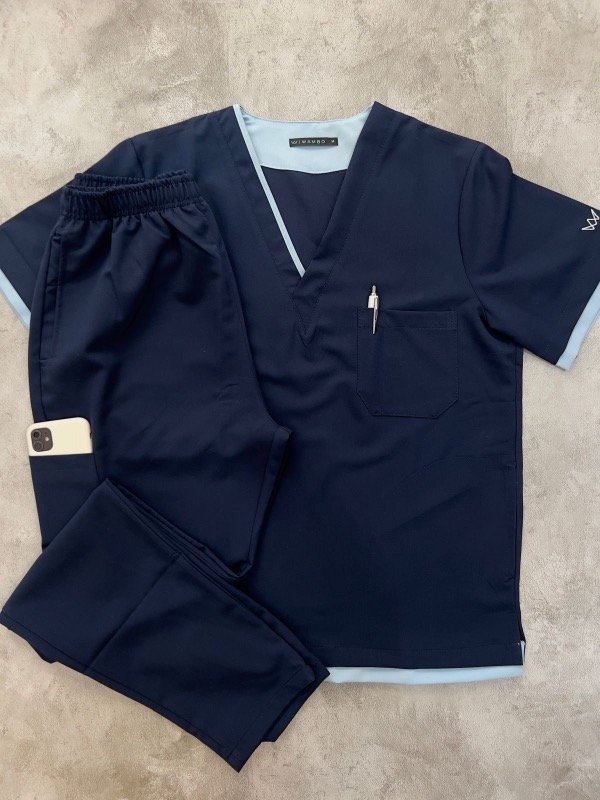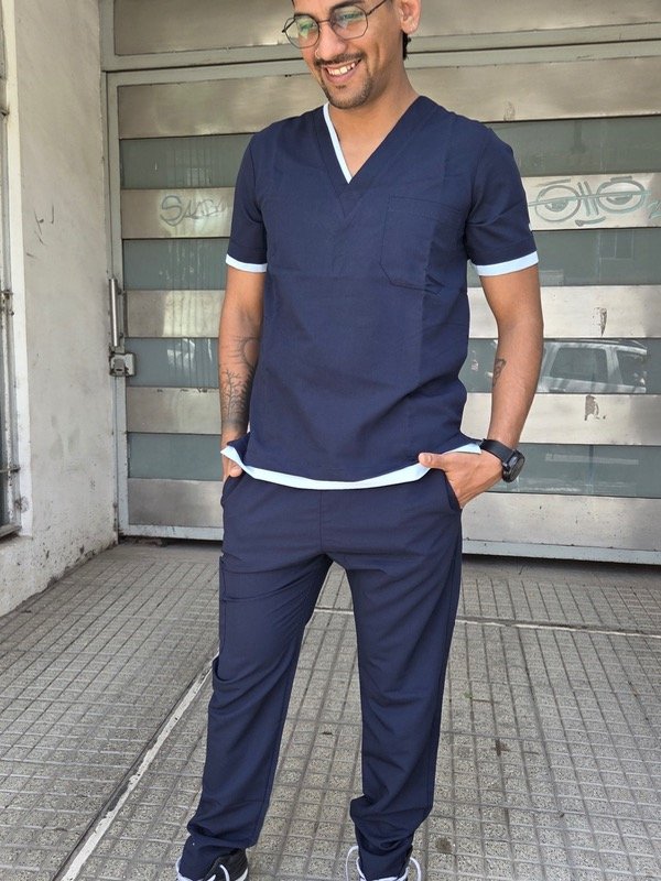 Ambo en tela spandex liviano con bolsillos laterales. Pantalón achupinado con bolsillos tipo cargo.