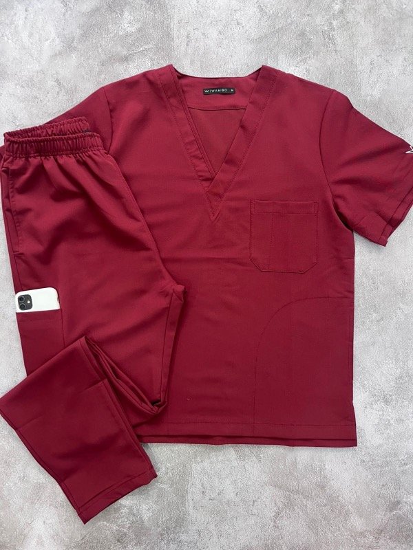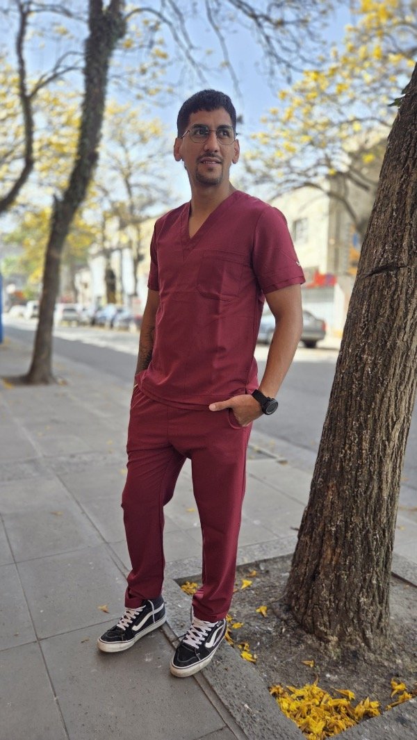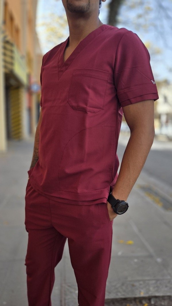 Ambo en tela spandex liviano con bolsillos laterales. Pantalón achupinado con bolsillos tipo cargo.