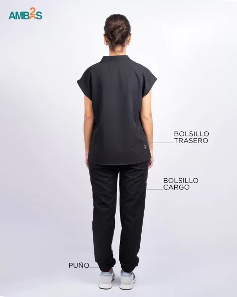 PANTALÓN: Bolsillos laterales, tiro alto recto con un bolsillo extra plaque tipo cargo.
