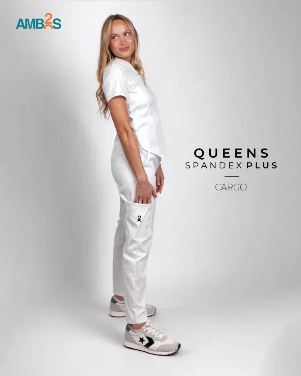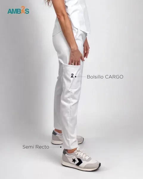 PANTALÓN: Bolsillos latereales, tiro alto, semi recto con un bolsillo cargo plaque.