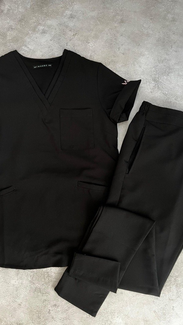 Este conjunto está compuesto por chaqueta y pantalón confeccionados en spandex, una tela liviana, elástica y cómoda para largas jornadas laborales.