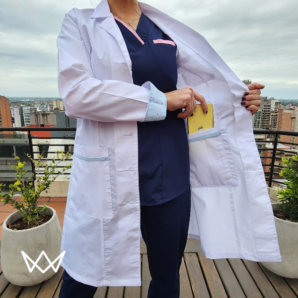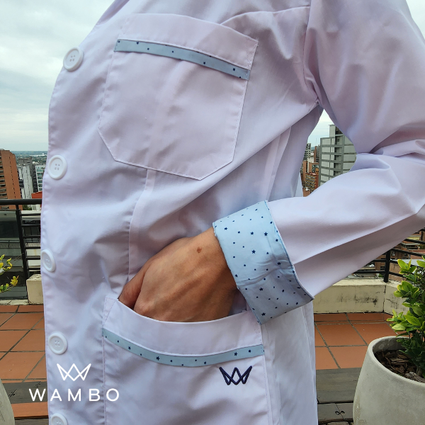 Guardapolvo Blanco detalle Estrellitas Fondo Celeste