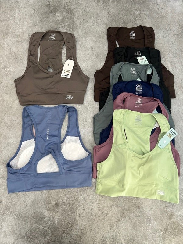 Top deportivo de lycra con tazas desmontables, con apertura en la espalda